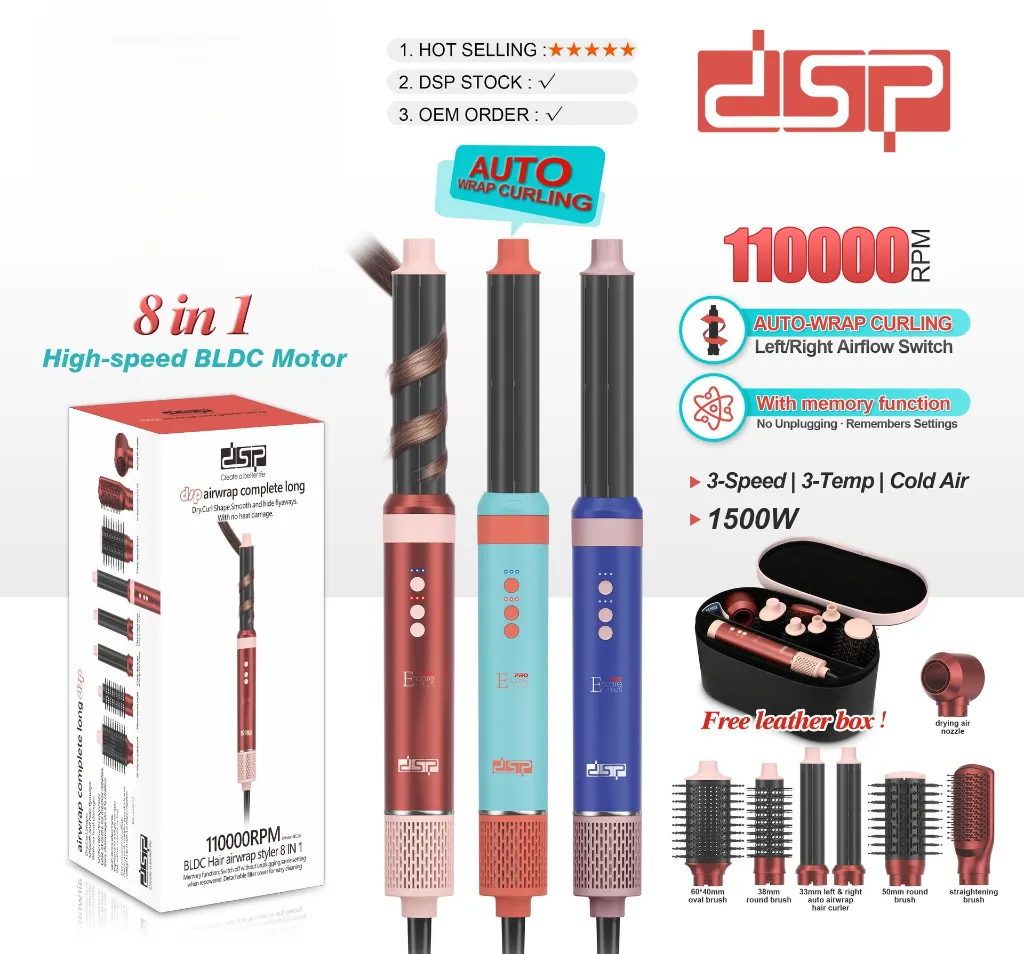 Révolutionne ta routine coiffure avec le coffret coiffure professionnel DSP 8-en-1. Grâce à son moteur haute vitesse 110000 RPM et sa puissance de 1500 W, cet appareil te permet de sécher, lisser, boucler et donner du volume à tes cheveux rapidement et sans effort — comme chez un coiffeur professionnel 💆♀️.