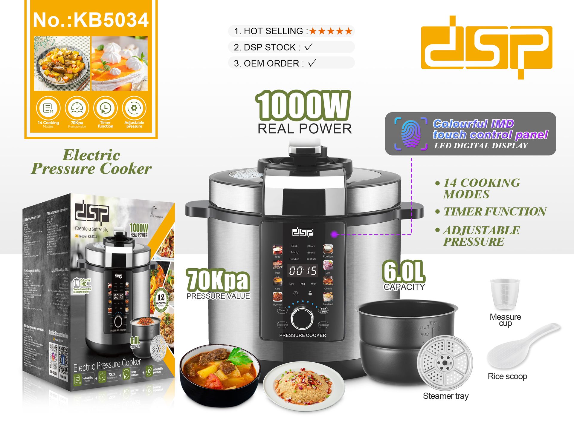🍲✨ Cocotte Électrique Intelligente DSP – 14-en-1 – 6 L – 1000 W
