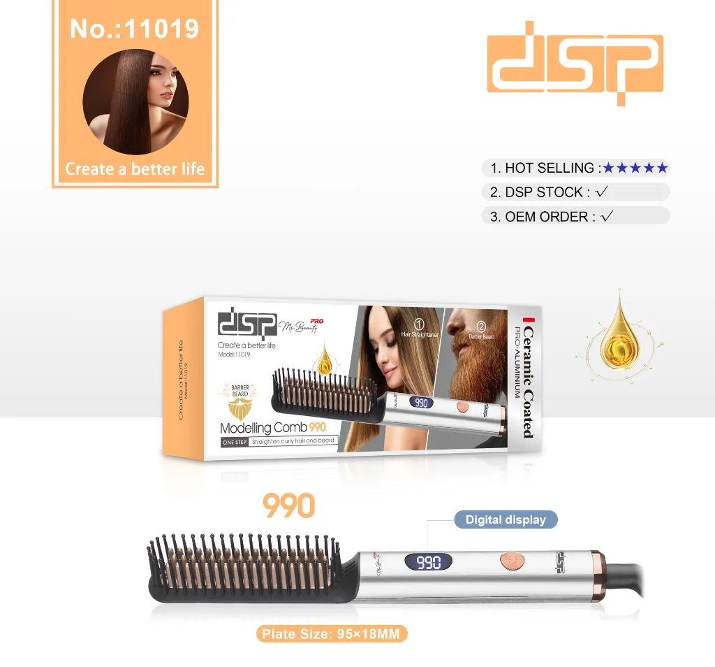 Obtiens des cheveux lisses, disciplinés et stylés en quelques minutes avec cette brosse coiffante électrique DSP 🪮. Grâce à son revêtement en céramique, sa puissance de 30 W et son afficheur digital de température (990 °F), elle permet de lisser, discipliner, démêler et dompter les frisottis très facilement — sans abîmer les cheveux !