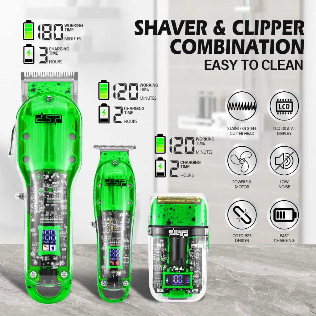 ✨ Kit Tondeuse, Trimmer & Rasoir 3 en 1 DSP – 8 W •Vert