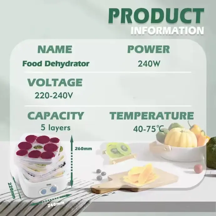 🍎🌿 Déshydrateur Alimentaire DSP – 5 Étagères – 75 °C – 240 W